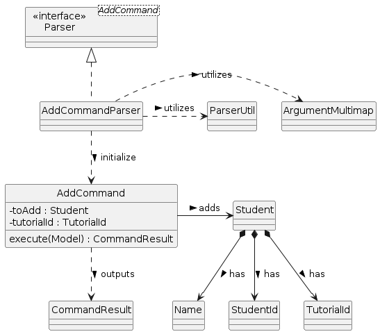 Besides, a class diagram of add student command is given below to demonstrate the interactions among classes.