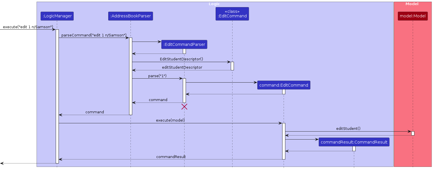 Note: The lifeline for DeleteCommandParser should end at the destroy marker (X) but due to a limitation of PlantUML, the lifeline continues till the end of diagram.